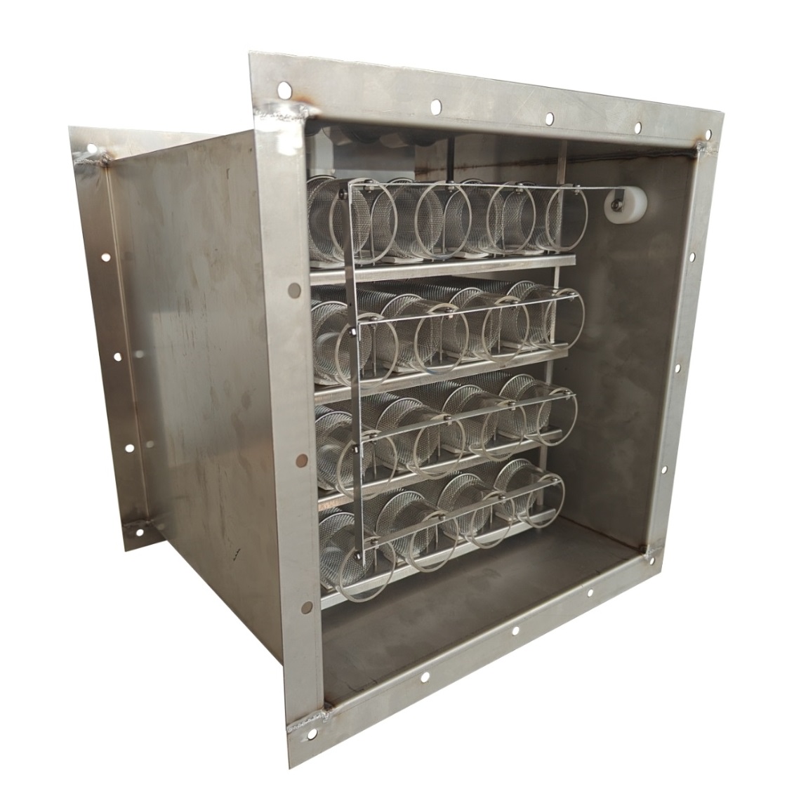 2. 擴管反應箱 : 將風管設計成「管徑由小變大」或「進出口管徑不同」 的反應空間,讓氣體或氣液混合流體在進入較大截面後以便:流速降低 / 停留時間增加 / 擾流與混合效果提升反應更充分